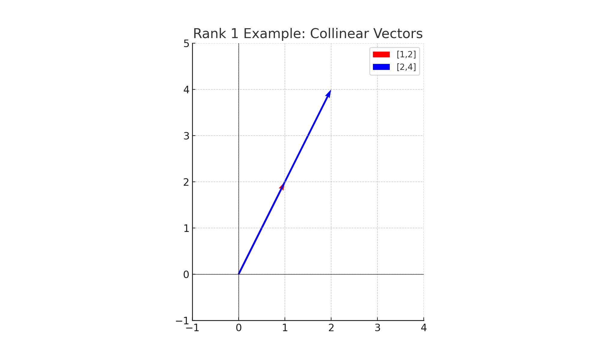 이미지: 두 벡터가 같은 방향에 놓여 있어 선형 독립이 아님을 시각화