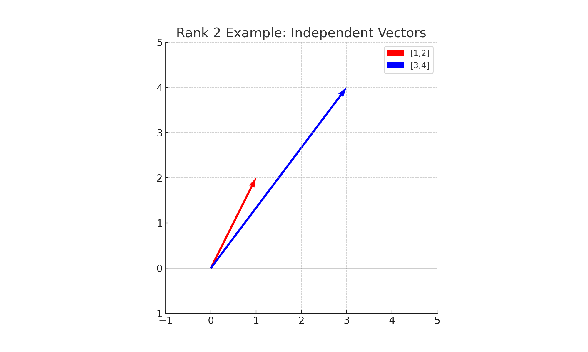 행렬의 랭크는 행렬이 가진 독립적인 정보의 개수를 나타낸다. 이는 선형 독립인 행 또는 열의 최대 개수와 같다.
