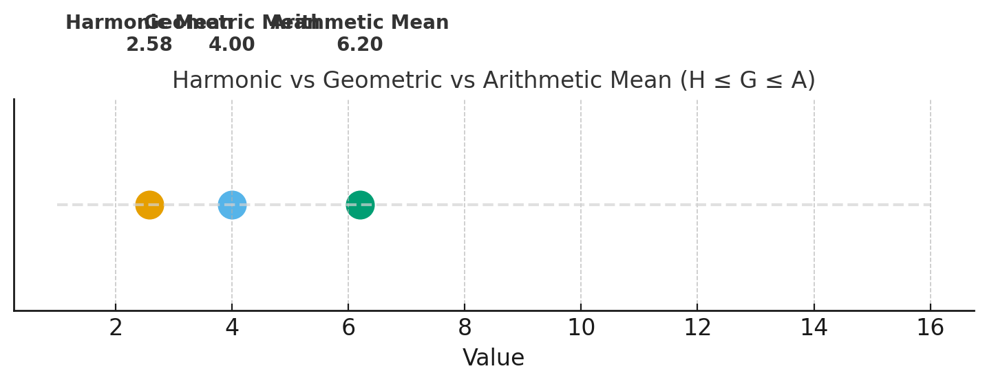 조화평균은 "역수의 평균" → 작은 값에 민감