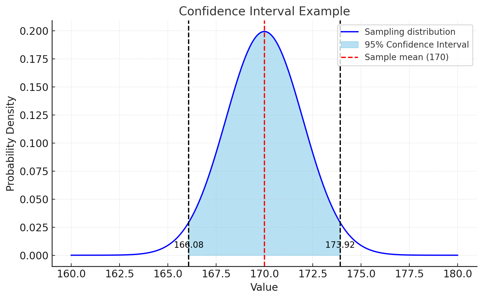 즉, \(170 \pm 1.96 \times 2 = [166.08, 173.92]\) 이 된다.
