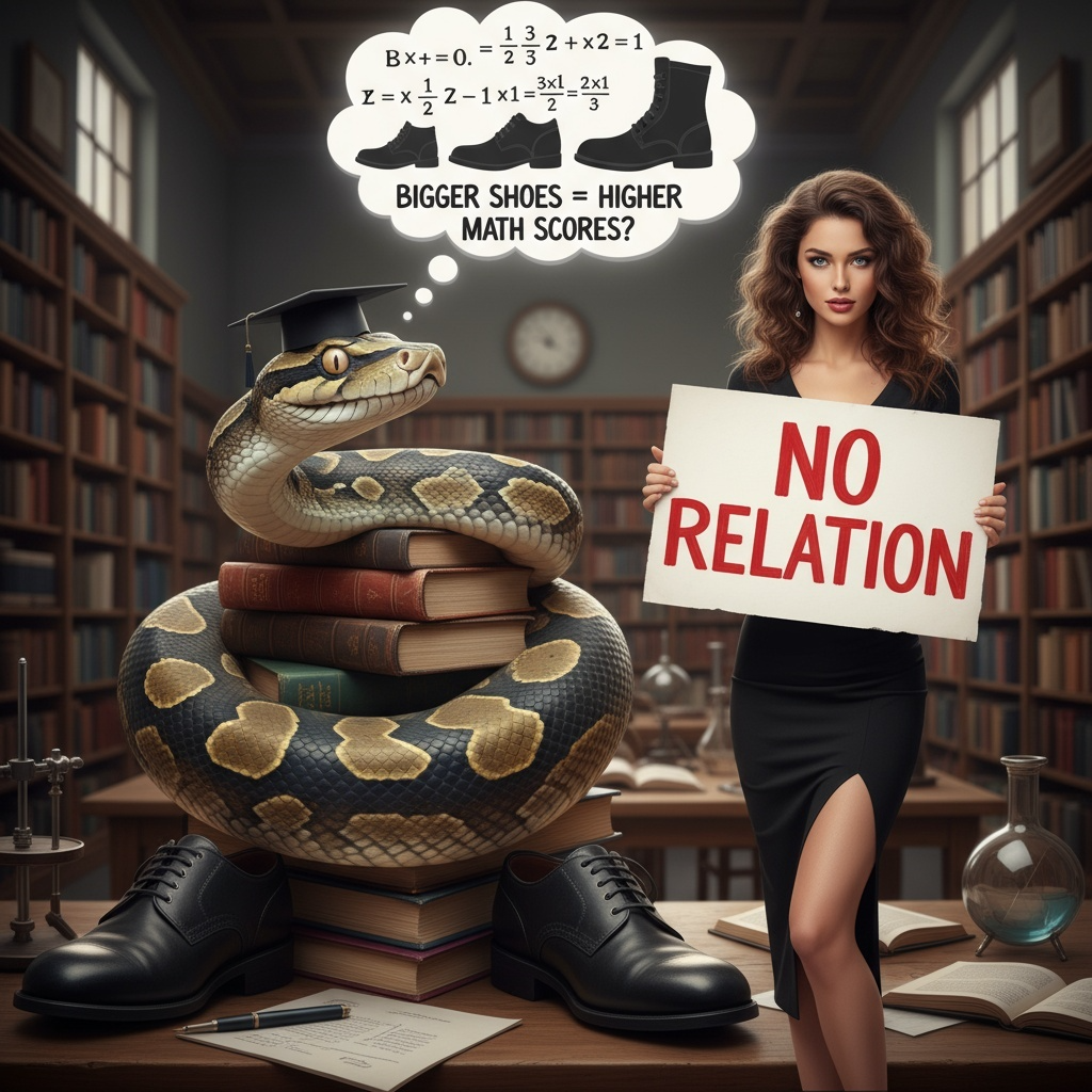 마지막으로, 신발 사이즈와 수학 점수처럼 서로 관련이 없는 변수들도 있다. 이런 경우에는 두 변수의 변화가 서로 영향을 주지 않기 때문에 상관계수가 0에 가까운 값을 나타낸다. 이는 선형적인 관계가 거의 없다는 뜻이다.