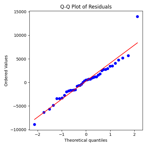 세로축은 실제 잔차의 분위값(Ordered Values)을 나타낸다.