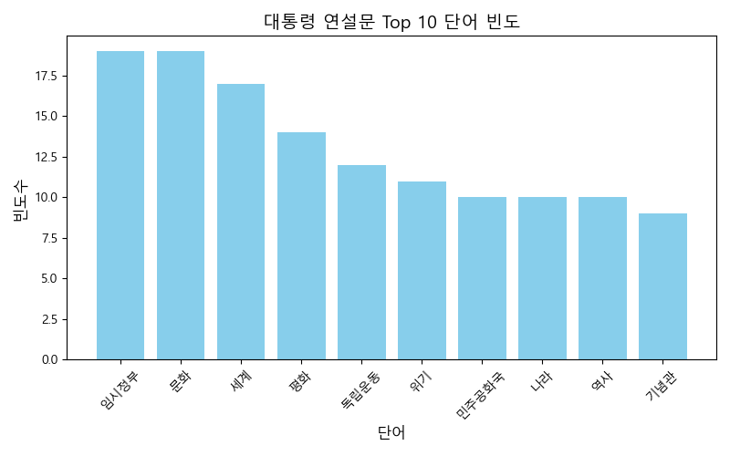 # 예: ["독립", "기념일", "국가", "대한민국", ...]